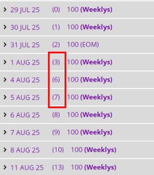 Check the hourly chart. When the RSI dips below 50, that’s your cue. This signals short-term weakness within an uptrend—an ideal time to enter a bullish credit spread.Set Expiration 3–7 Days Out